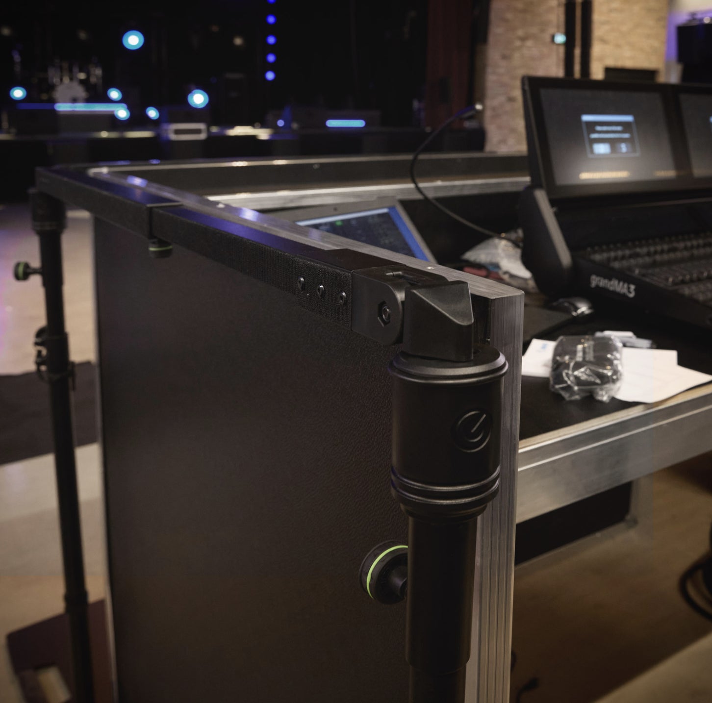 The Gravity® Pipe and Drape curtain system offers an innovative solution for musicians, bands, event technicians, theatres, exhibitors and stand builders. It enables swift and efficient room structuring, area partitioning, wall suspension, or walkway delineation. Utilising the PAD T M telescopic crossbar alongside the separately available PAD A 4-way adapter, standard speaker or lighting stands with 35 mm mounts can seamlessly transform into comprehensive pipe and drape setups with minimal effort. Simply place the PAD A on to the stand, and attach the telescopic crossbar by inserting its mounting bolts into the adapter's holes. An optional Molton curtain can later be effortlessly affixed to the crossbar.