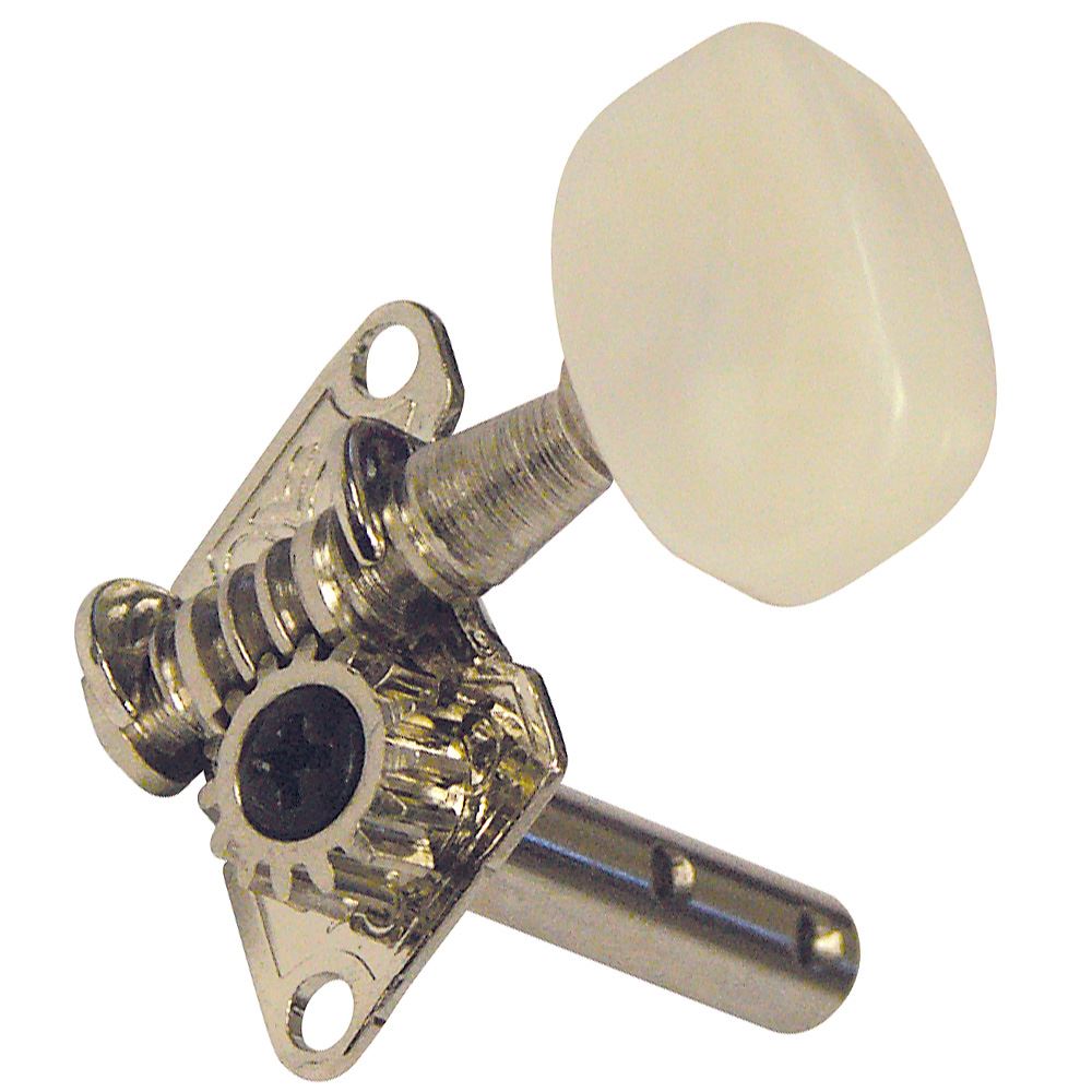 6 individual open gear steel string guitar machines, 3 + 3, dished lozenge button, steel rollers.