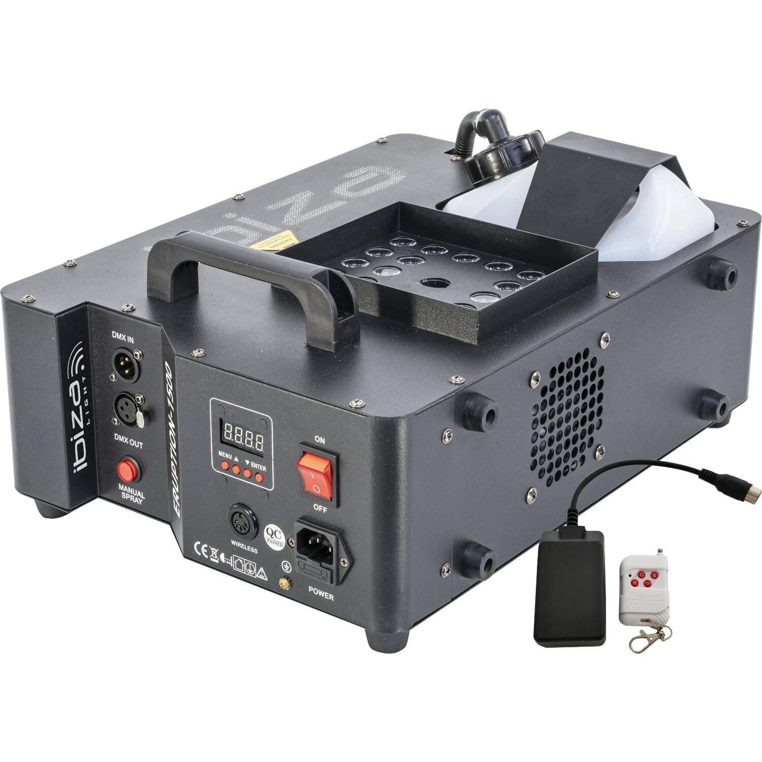 This impressive machine shoots massive fog fountains lit by powerful RGB LEDs at spectacular heights. With 1500W of power, it generates up to 900m3 of fog per minute. It goes without saying that even large premises are not a big challenge for it!