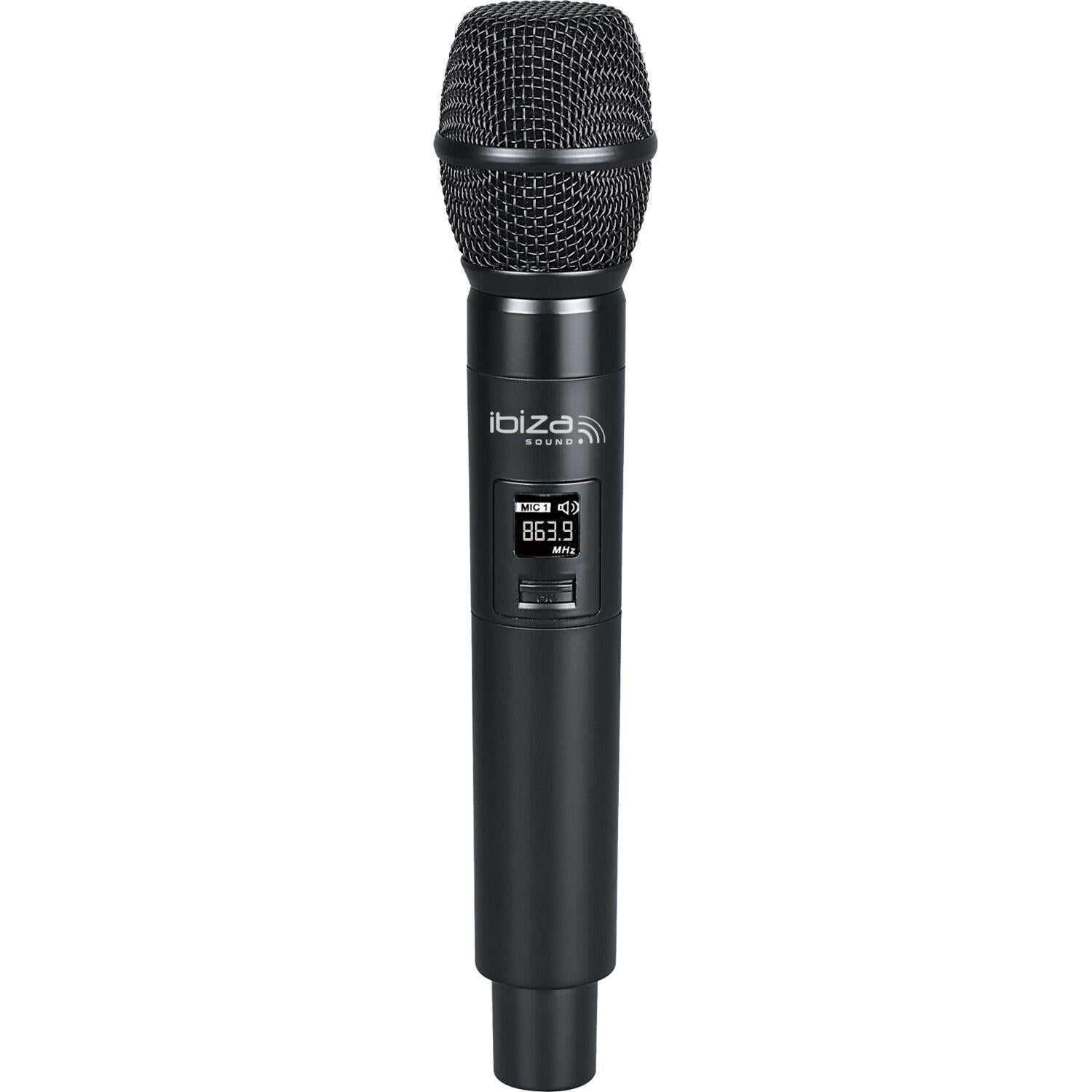 1 hand-held mic (863.9MHz), 1 headset (864.9MHz) and 1 tie-clip mic that connect to the belt-clip transmitter
