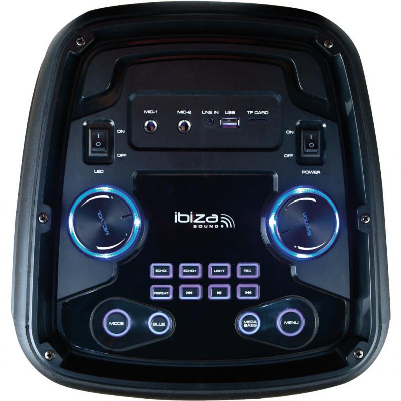 Active speaker box fitted with a rechargeable high capacity battery that will ensure hours of music, enhanced by dynamic light animation around the woofers.