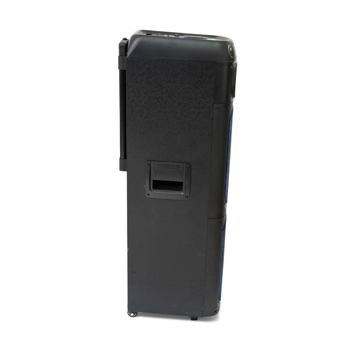 The STUPDJ1400 “Special Karaoke” StandUp Box is a high-powered, feature-packed speaker system designed to elevate any karaoke night or house party. With dual 10” drivers delivering 1400W of sound, this speaker offers vibrant audio performance enhanced by dynamic LED light effects on the front panel and illuminated controls. Supporting Bluetooth, USB, microSD, and AUX input sources, it delivers versatile playback options. Microphone inputs with echo and volume control, a voice priority function, and a built-in recording feature make it the perfect all-in-one entertainment unit. With wheels and a trolley handle for easy transport, this unit is as practical as it is powerful.