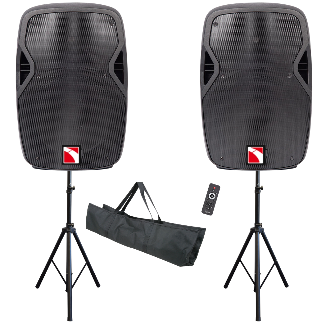 The Power Pack 15 is a twin active 15" speaker set including remote and speaker stand, perfect for DJ's and bands. All this is included for an unbeatable price!