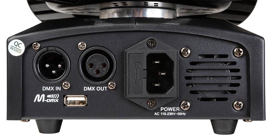 A clear four-digit LED screen ensures easy menu navigation, while the USB connection allows for wireless DMX control with the optional receiver dongle. The fixture also comes with a U-bracket for secure mounting on trusses, ceilings or lighting stands, making it both practical and highly versatile.