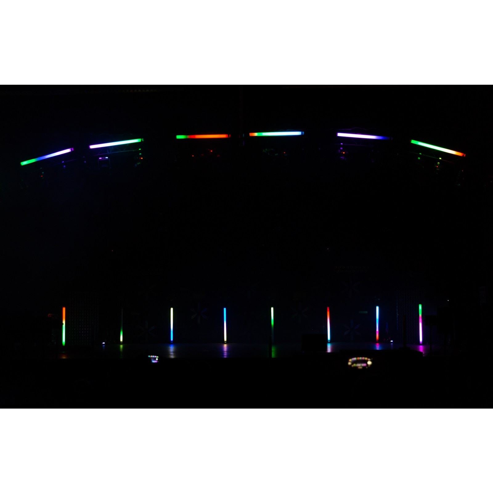 DMX-controlled: 3 different channel modes (3,7 and 24ch) with program selection and individual RGB control.
