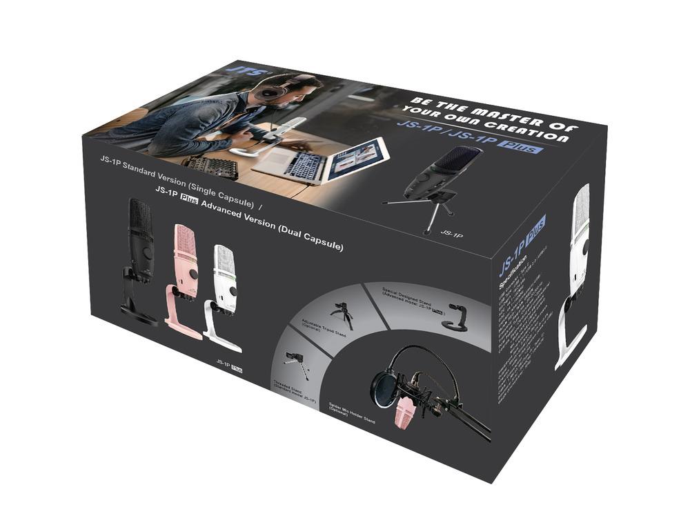 The JS-1P is a USB Condenser Microphone with a High Sensitivity cardioid pickup pattern that makes it perfect for Podcasts, on-line video calls as well as live and recorded applications.