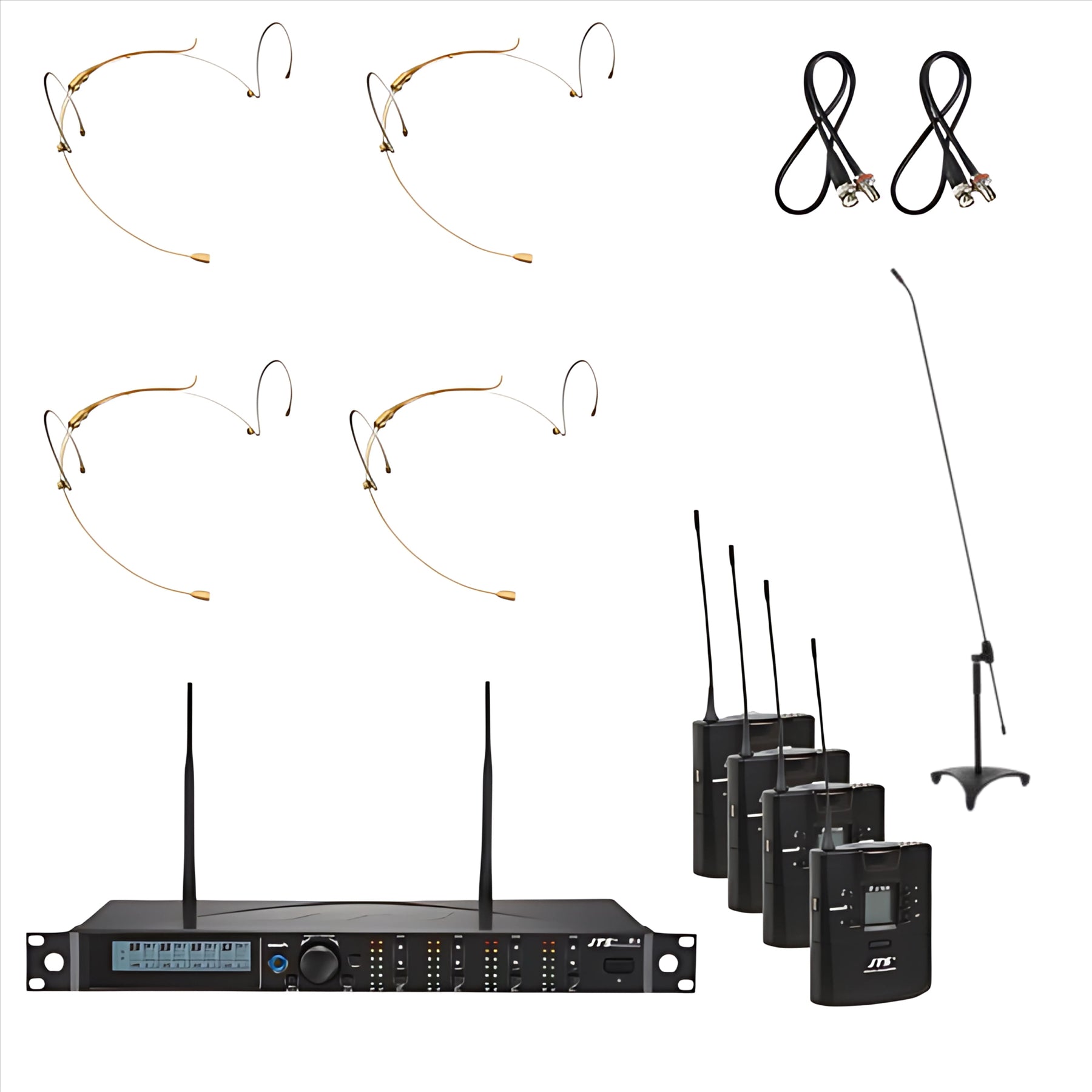 The ultimate solution for professional multi-user wireless microphone setups, this complete bundle combines the reliable performance of JTS's quad-channel UHF system with top-quality accessories for seamless deployment. Perfect for stage productions, conferences, education environments, houses of worship, and corporate events, this bundle ensures clear audio, stable wireless transmission, and a fully rack-ready installation.