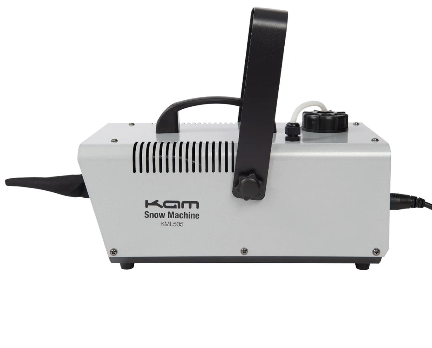 The compact, robust, portable KAM high output Snow Machine with a 5 litre capacity fuel tank, impressive 20m³ snowflake output and min/max controls for Snow Volume and Internal Fan, is perfect for enhancing the party atmosphere, social events, weddings and birthdays. These realistic snow illusions are also ideal to create a magical, winter wonderland atmosphere for videos, theatrical productions, homes and businesses.