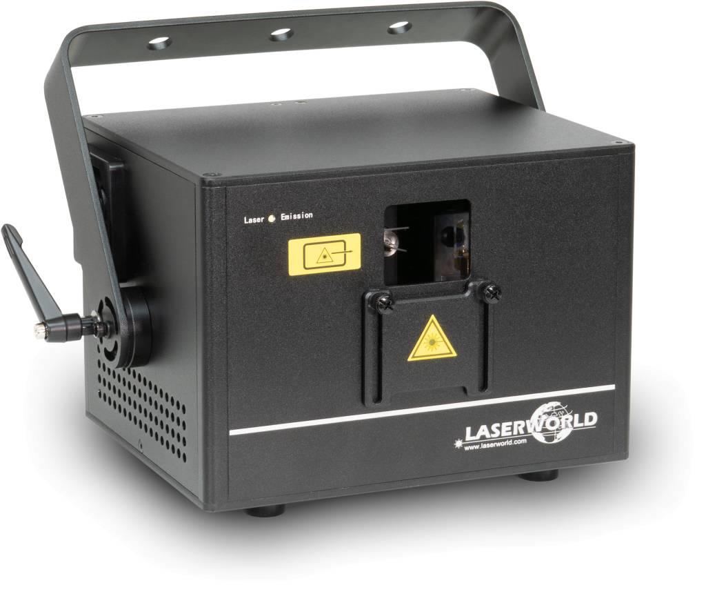 The system is an analog-modulated RGB diode laser with up to 1,500 mW total power: