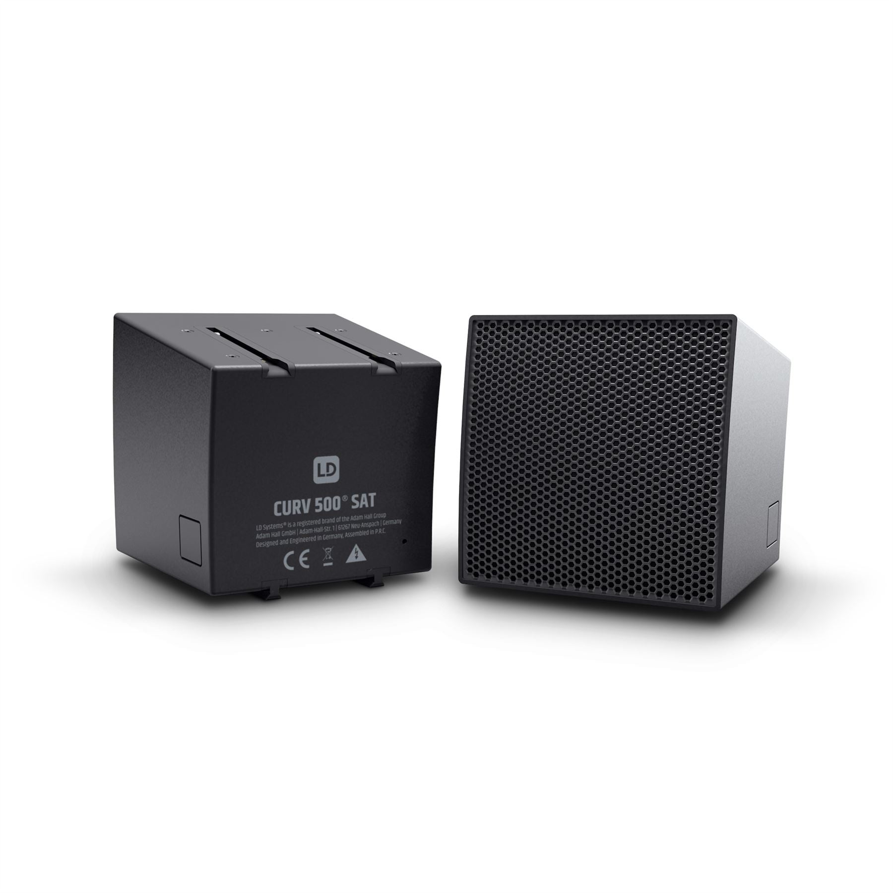 This accessory package is suitable for extension or addition to an existing CURV 500A. The satellites, 12 x 12 cm in size, are made of black die-cast aluminium and produce an excellent sound. This is achieved by their single 4-inch midrange driver and three 1-inch high-frequency drivers. Thanks to the WaveAheadA technology developed by LD Systems, the tweeters are arranged vertically ahead of the high-performance full-range speaker, thus the perfect sound mix and dispersion is achieved. The 110 degrees horizontal dispersion angle is very wide and is limited vertically to 10 degrees per satellite - which reduces reflections on ceilings and floors. A passive crossover at 2500 Hz ensures an optimum allocation of the frequency spectrum. With the patented SmartLinkA plug-in mechanism, the system, comprising up to four array satellites, can be assembled without cables in a matter of seconds. Robust metal grilles with acoustic material for rear tensioning protect the drivers of the rugged satellites featuring 16 ohm impedance and a weight of 1.73 kg. The matt-black powder-coated surface is resilient and gives the satellite an elegant look. For fixed installations, there is an M3 screw connection for the safety rope.