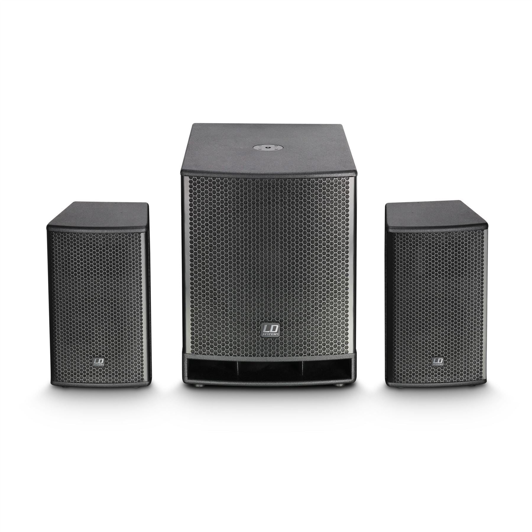 The DAVE 18 G3 hardware includes steel grilles, an M20 pole insert and LD's Evolutive handles on the sub for transport convenience as well as adjustable tilt stand mounts on the satellite speakers for optimum coverage angles.