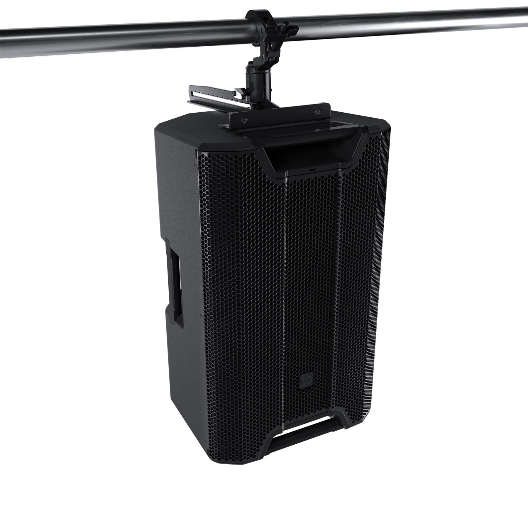The rugged ABS enclosure has integrated steel reinforcement, ergonomic handles and mounting options for floor, pole, or flown installs. It’s EasyMount-compatible with six M10 rigging points and a dual-angle stand mount. Optional accessories like weatherproof covers and padded bags are available.
