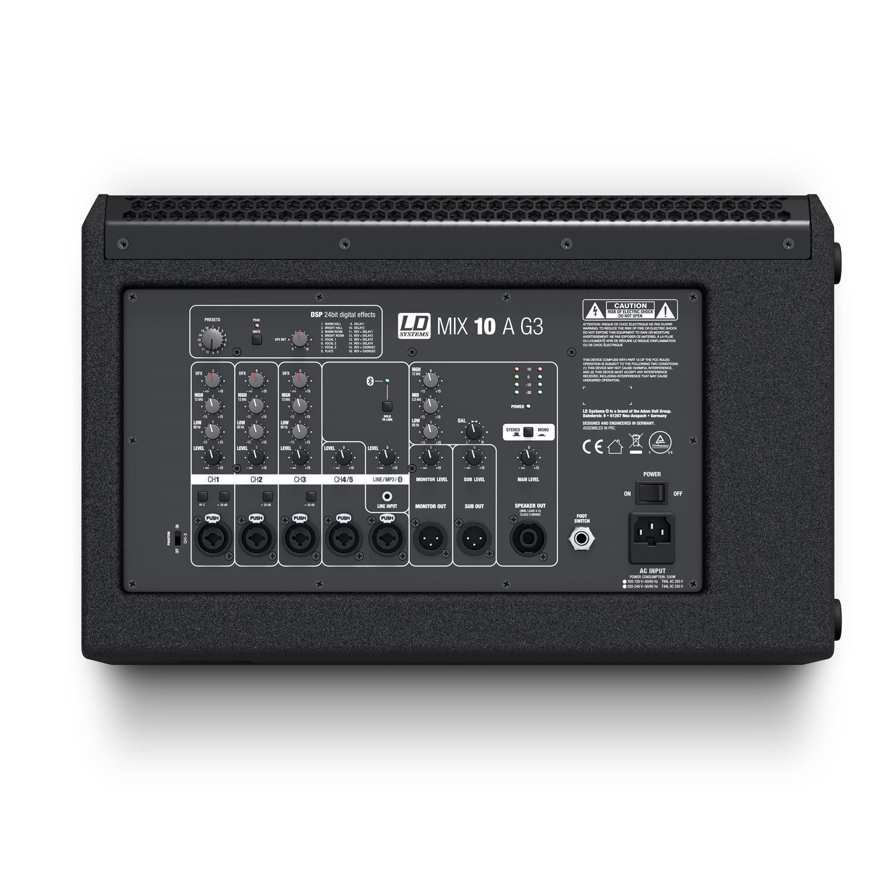 Accomodating a wide variety of input sources including electric instruments, smartphones, tablets, MP3 and CD players, the built-in mixer provides 3 microphone channels with 2-band EQ, 48 V phantom power plus switchable hi-Z input (CH1) and stereo line channel. The output section includes a 3-band master EQ for overall tone shaping, 4-segment LED metering and XLR monitor and subwoofer outputs. In addition, the LD MIX 10 A G3 sports a DSP with 16 effect presets, limiter and overcurrent, overload, short circuit and thermal protection. A speakON output allows powering the passive LD MIX 10 G3 to easily create a stereo setup.