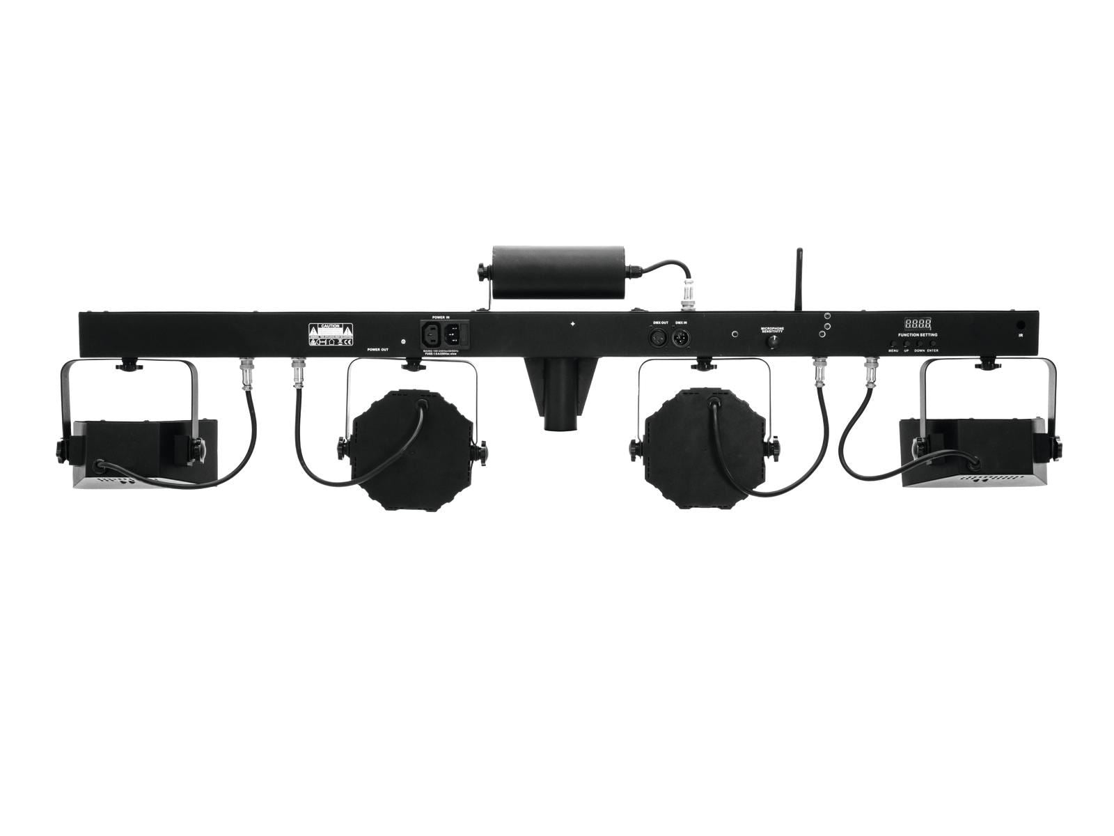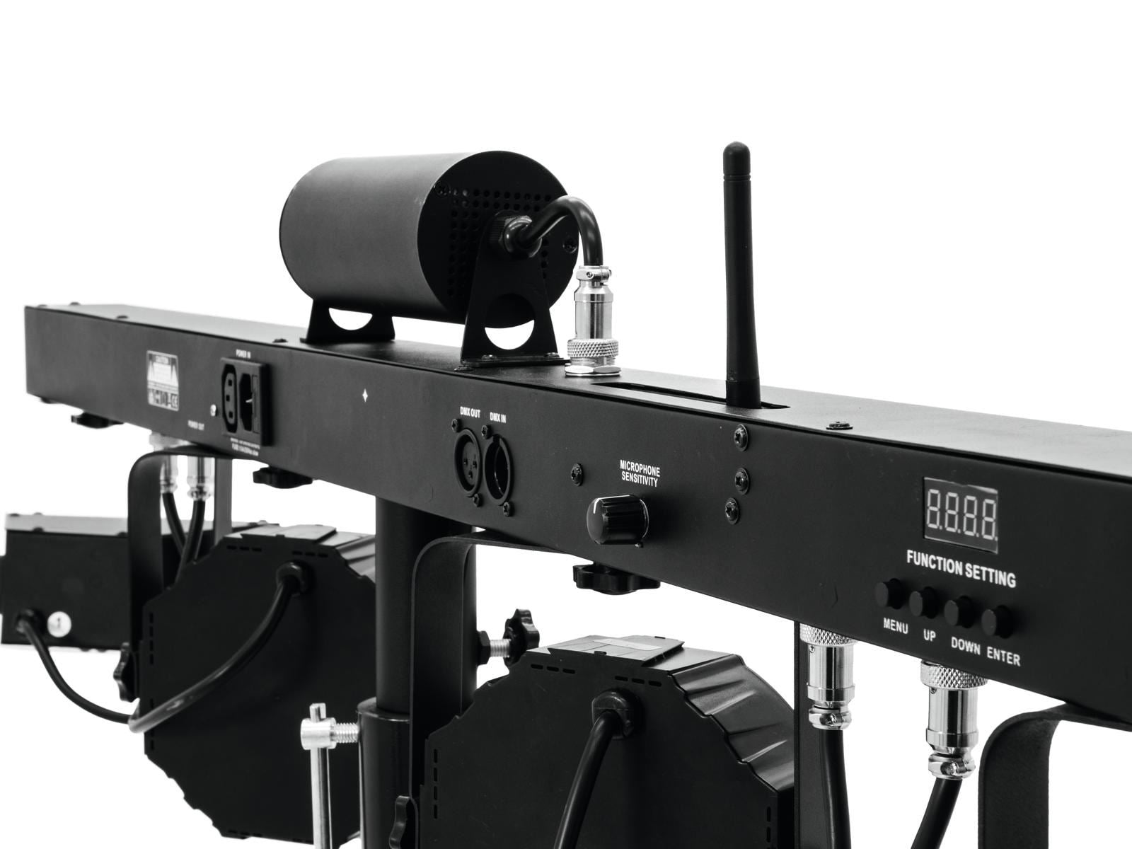 | Control: | Stand-alone; DMX; IR remote control; Sound to light via Microphone; Wireless footswitch; Master/slave function; EASY SHOW; Light J Software; EUROLITE LED PC-Control 512 software |
