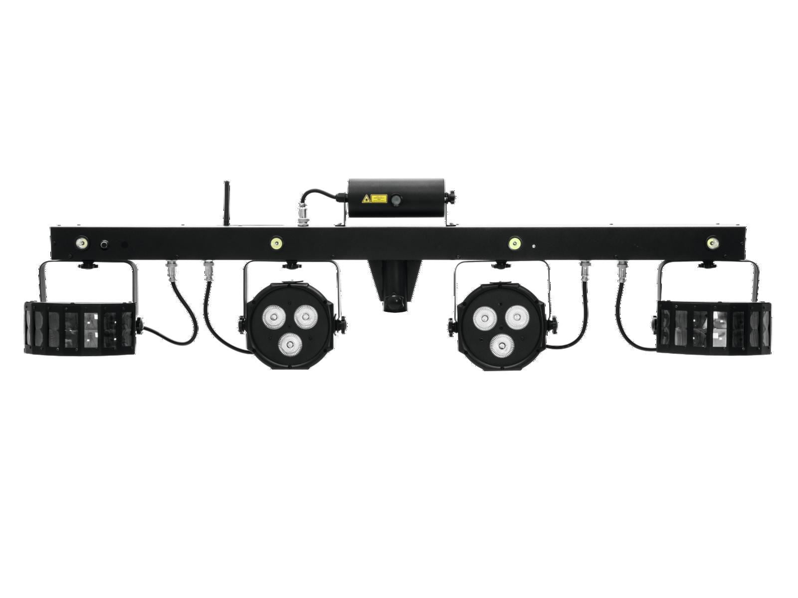 Bar with 2 derbies, 2 spots, white strobe LEDs, laser (RG, 2M), foot switch