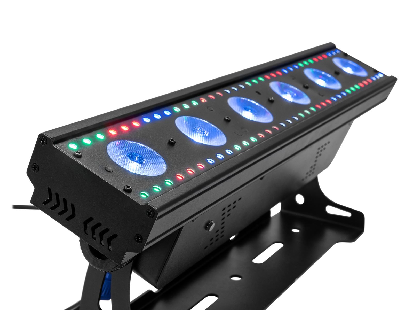 | LED: | Strobe effect 72 x SMD 0.5 W 3in1 TCL RGB (homogenous color mix) Wash effect 6 x high-power 9 W 7in1 SCL RGB/CW/WW/A/UV (homogenous color mix) |