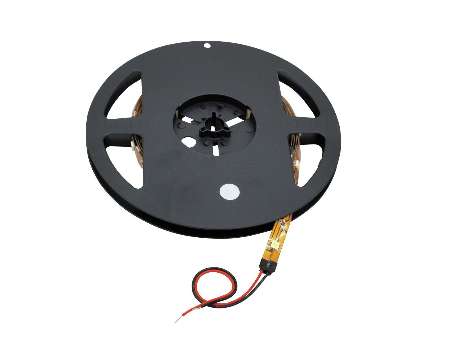 With its numerous LED strips, Eurolite offers light on tape for technical decoration or bar illumination.The flexible LED strips have a length of 5 meters. Unichrome versions - red, blue, green, yellow, cool white, warm white - are complimented by two RGB versions. The single colors can be ordered either with a wide span (150 LEDs) or with a short span (300 LEDs) between the LEDs. The RGB versions are available in 12 V or 24 operation - LED quantities are 150 or 240. An optional LED controller controls the brightness and the speed of the RGB LEDs or provides automatic run of the built-in color programs.Supplied on a plastic reel, the LED stripes feature a self adhesive rear side for simple installation. Color and form can be used as desired as the strips are very flexible and adaptable to really every venue.