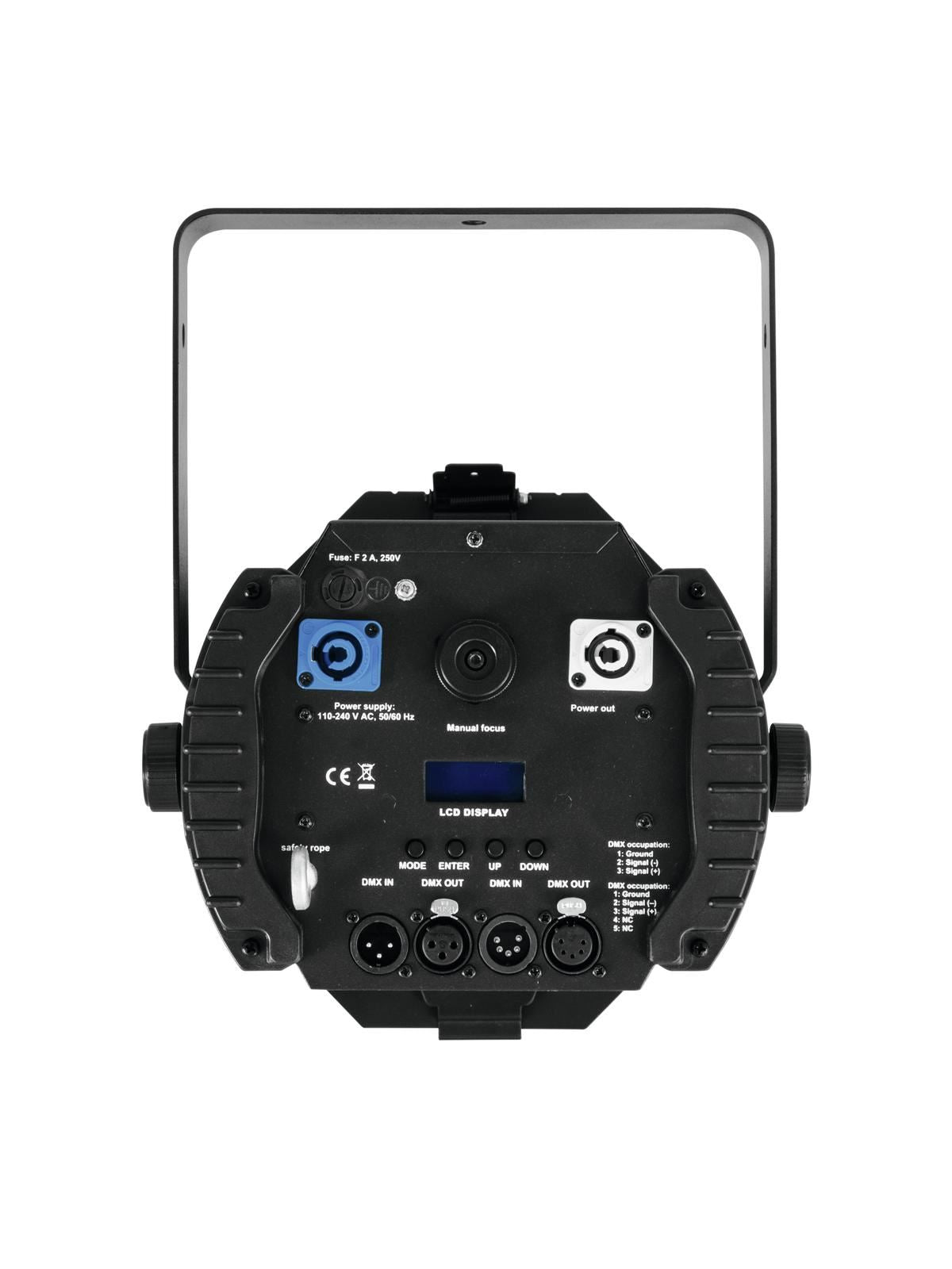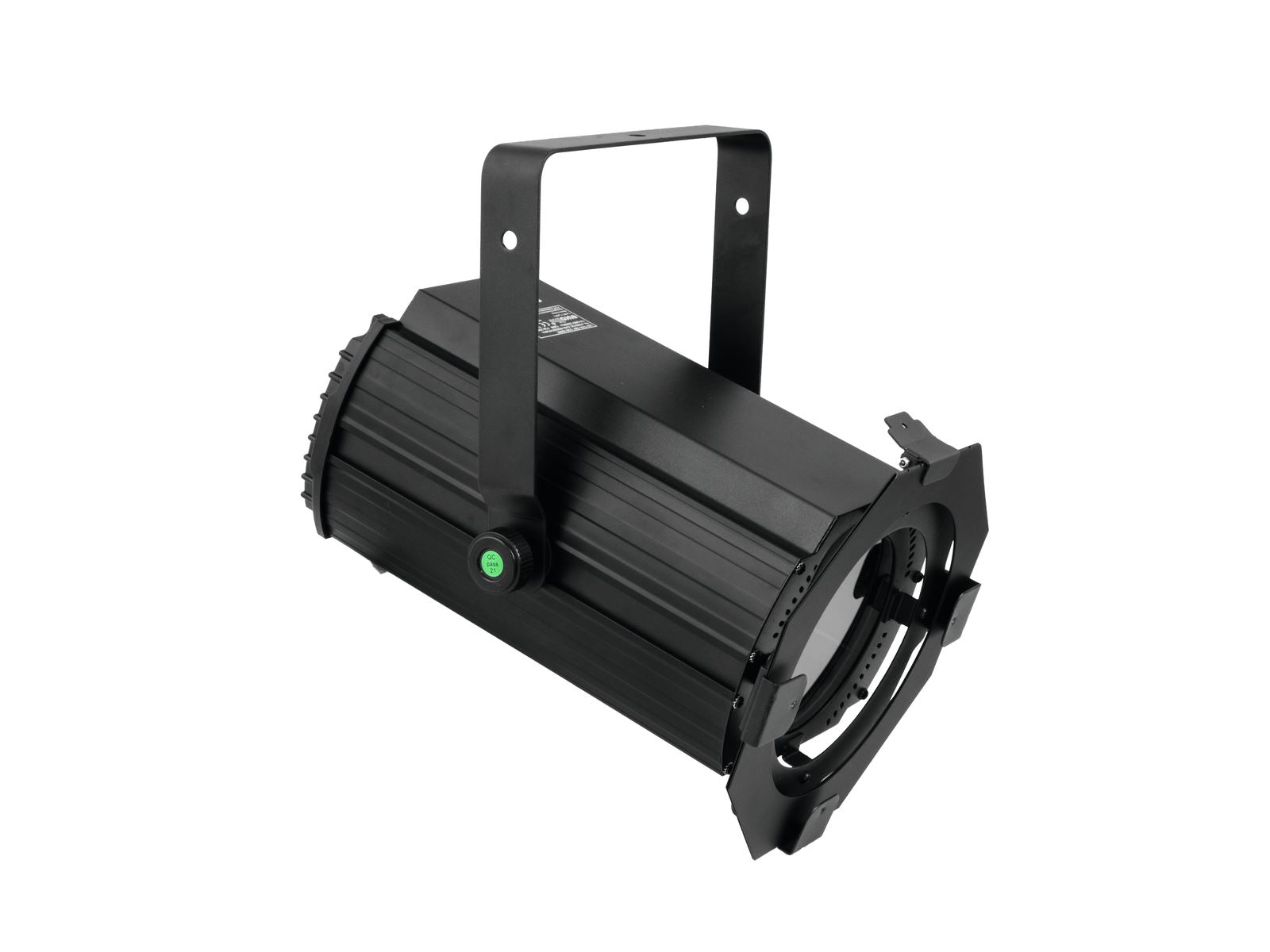 Fresnel spot (Fresnel lens), 100 W warm white LED, CRI > 90, quiet, DMX
