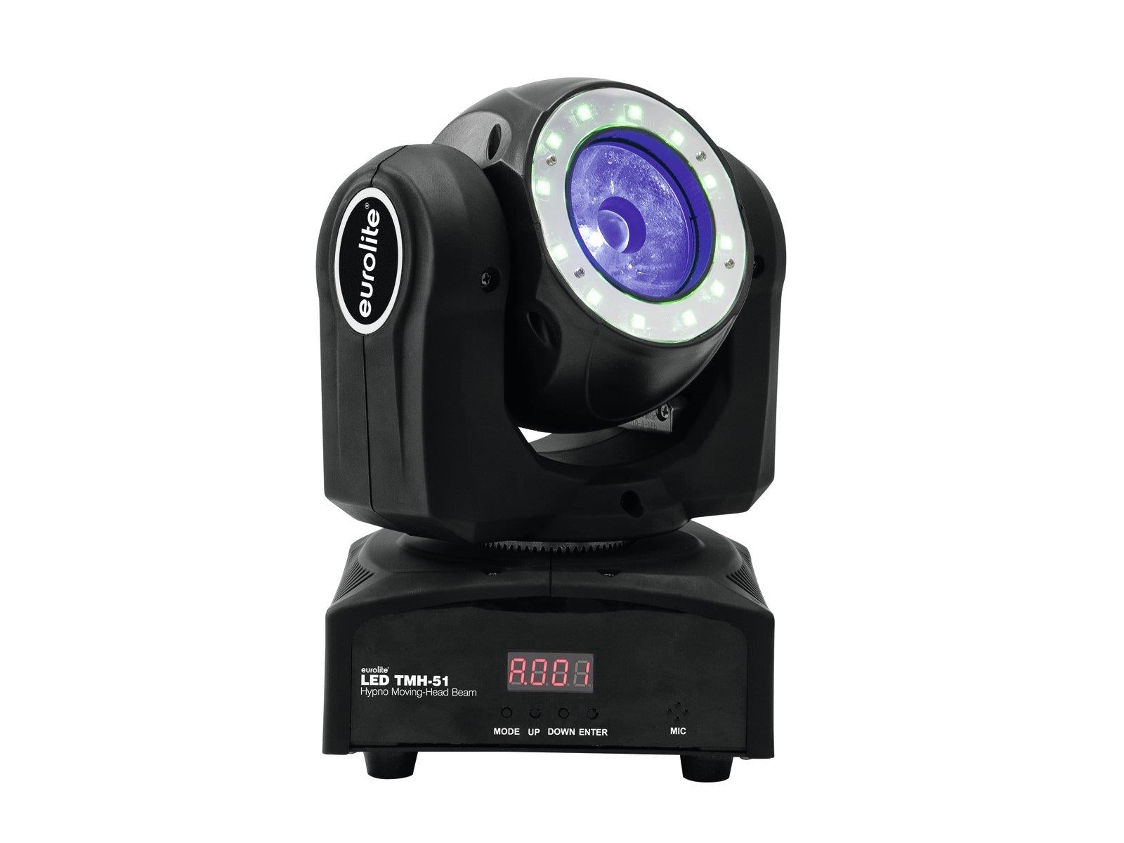 Mini-Beam with 60 W COB LED, RGBW colour mixing and hypno ring in 4 segments.