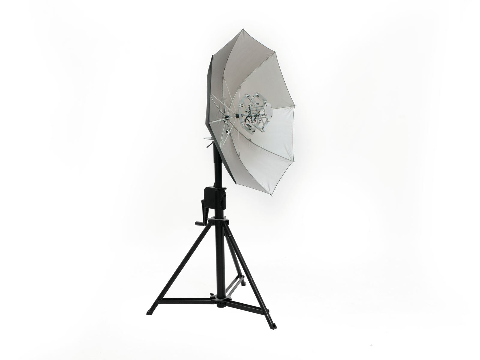 Can be mounted to a lighting stand or trussing - the umbrella's angle can be adjusted