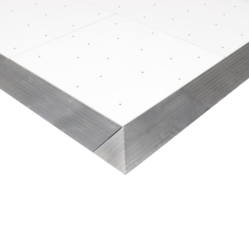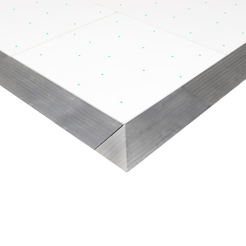 The LEDJ portable, Starlit dance floor systems have been designed to offer installers and users alike the flexibility to create different sized dance floors with speed and ease. With crisp white LEDs inset into high gloss black or white interlocking panels, the Starlit systems are ideal for use in venues for events such as weddings, parties and corporate evenings. Scalable in size, the systems use a combination of 4 x 2ft and 2 x 2ft panels all finished with a sloped aluminium edge trim.