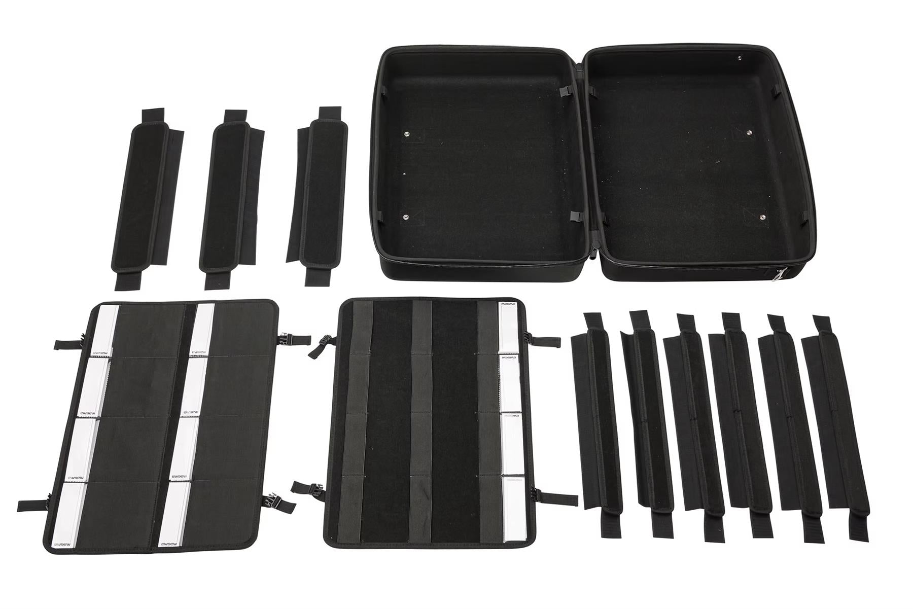 The ALLGANIZER PRO features a variable design with removable dividers in each compartment, allowing you to create customized storage spaces tailored to your specific setup requirements. Both the bottom and lid compartments have removable covers to keep gear in place, featuring elastic mesh pockets and loops for extra organization. Each pocket can be labeled for a clear overview at a glance.