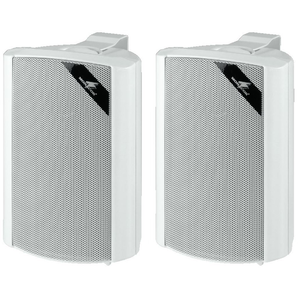 Pair of universal PA speaker systems in a white (WS) plastic cabinet with excellent sound quality.