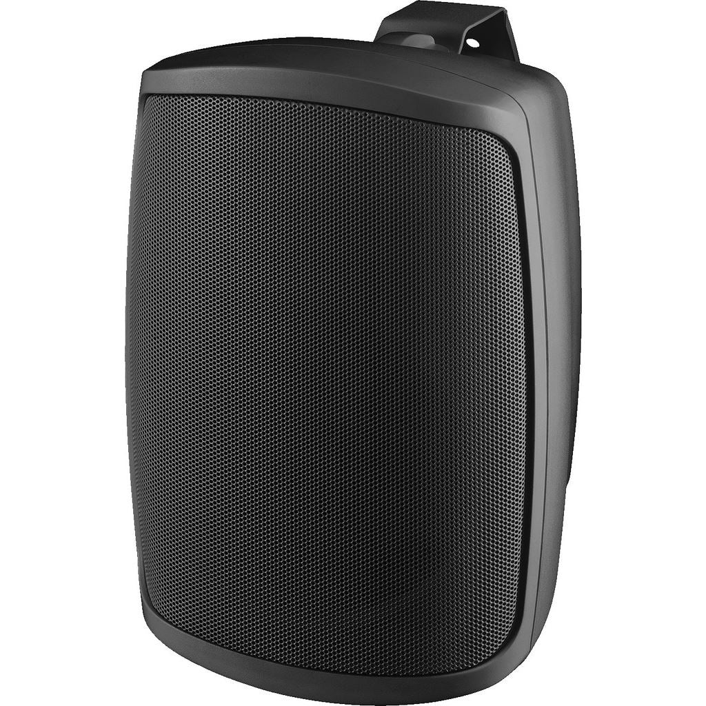 Pair of 100 V wall speakers with plastic cabinets in black. 4 power taps as well as switchable to 8 Ω operation. 10 cm (4") bass-midrange speaker and 12 mm (½") dome tweeter. Suitable for outdoor applications (IP65). Weatherproof. High sound quality and speech intelligibility. Mounting bracket for pivoting and tilting. Connecting terminal with cover.
