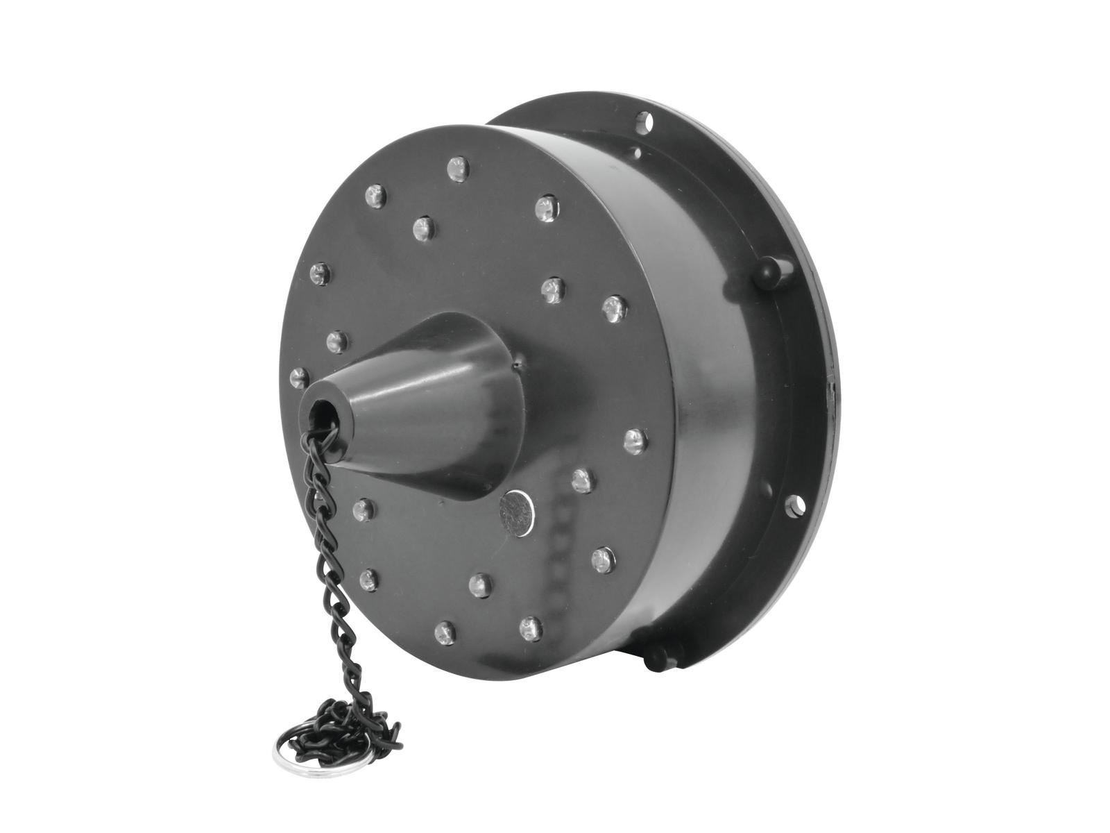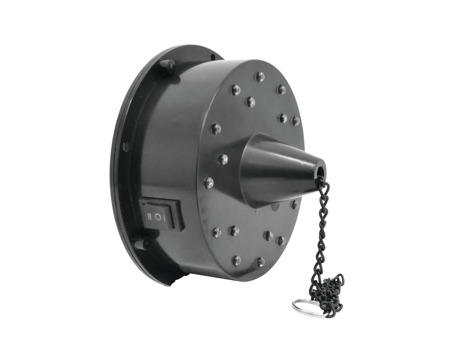 This battery-operated mirror ball motor by Eurolite reflects beautiful light effects on ceilings and walls; without any external lighting! This motor has been designed for mirror balls up to 0.5 kg and is simply mounted using the folding clamp or screwed to the ceiling. Not only does it steadily rotate the ball with 11 rotations per minute but it also illuminates it from above with 18 color LEDs. The reflecting light then covers the room in an infinite sea of moving light dots. Use the toggle switch to select either permanent light or the sound-controlled mode with soft color changes. Three 1.5 V batteries, type AA, are required for operation.