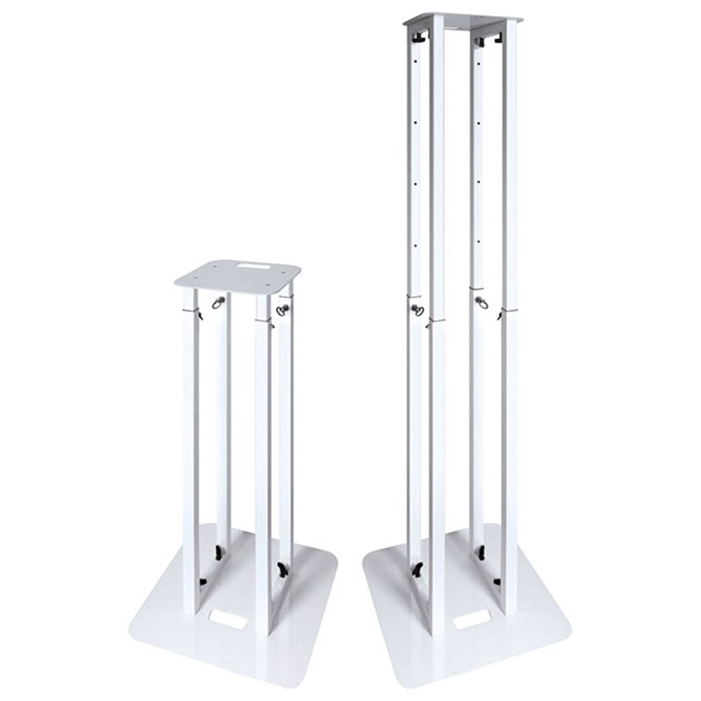 Adjustable height podiums for a stable display of moving heads, lighting FX, monitors, speakers, etc