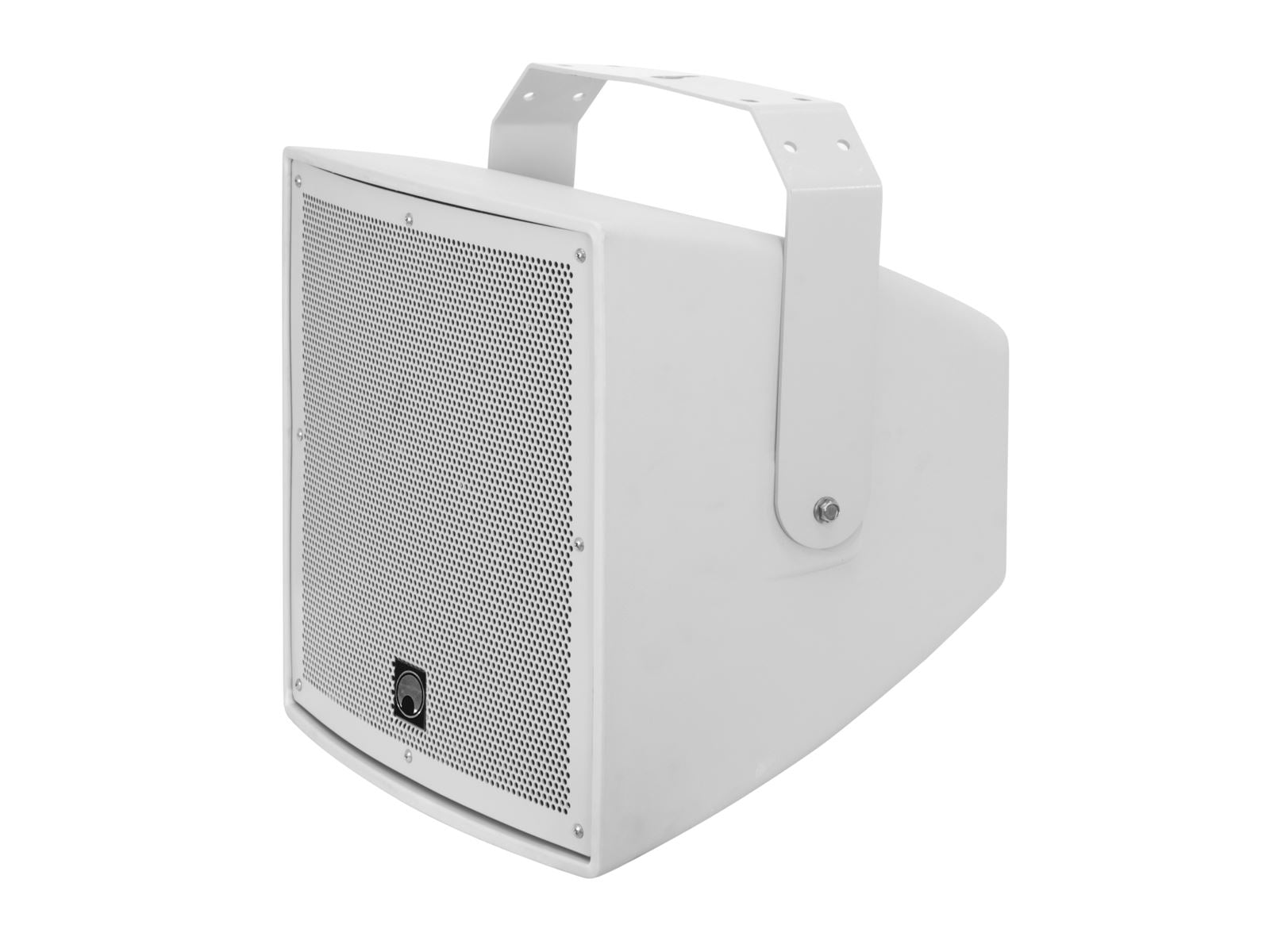 Weatherproof 12" wall speaker with mountThe ODX-212T 100 V sound reinforcement box by OMNITRONIC offers excellent sound and is ideally suited for outdoor use with its protection class IP56.The 2-way coaxial system is equipped with a 30 cm woofer and a 2.5 cm tweeter and a 100 V transformer with 3 power taps. In addition, the wall-mounted speaker has a power switch with an 8-ohm operating setting.The weatherproof, white plastic housing with the swivel mounting bracket can be mounted at variable angles.
