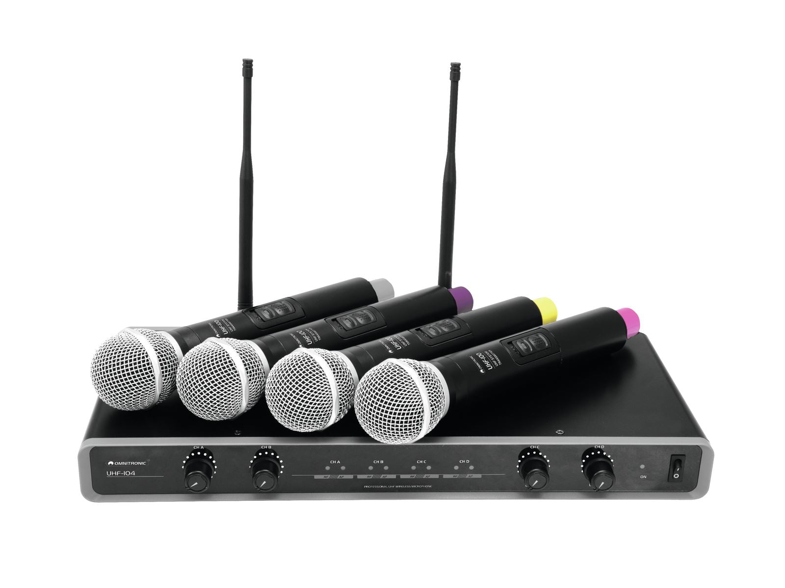 4-channel receiver unit and 4 hand-held microphones with UHF PLL technology