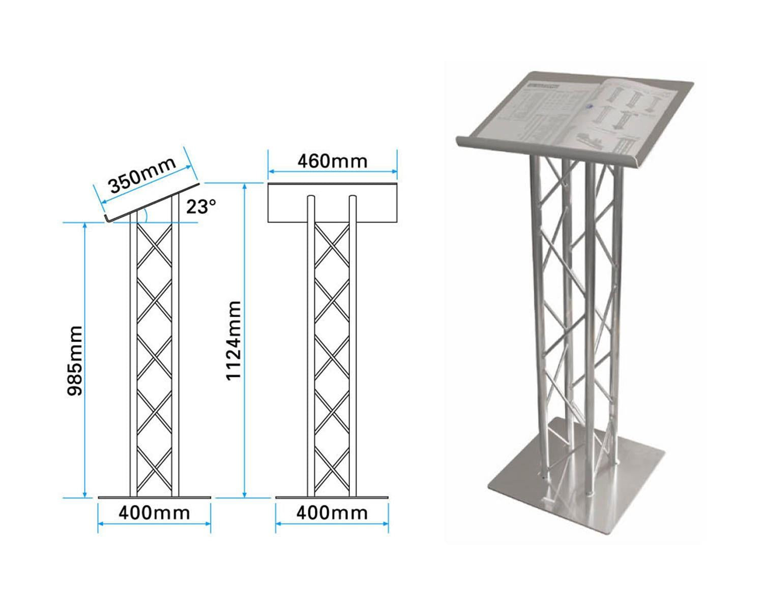 100 Quad Lectern in Natural Aluminium Finish. This slim-line lectern is a little more substantial in appearance than the Tri-Truss equivalent.