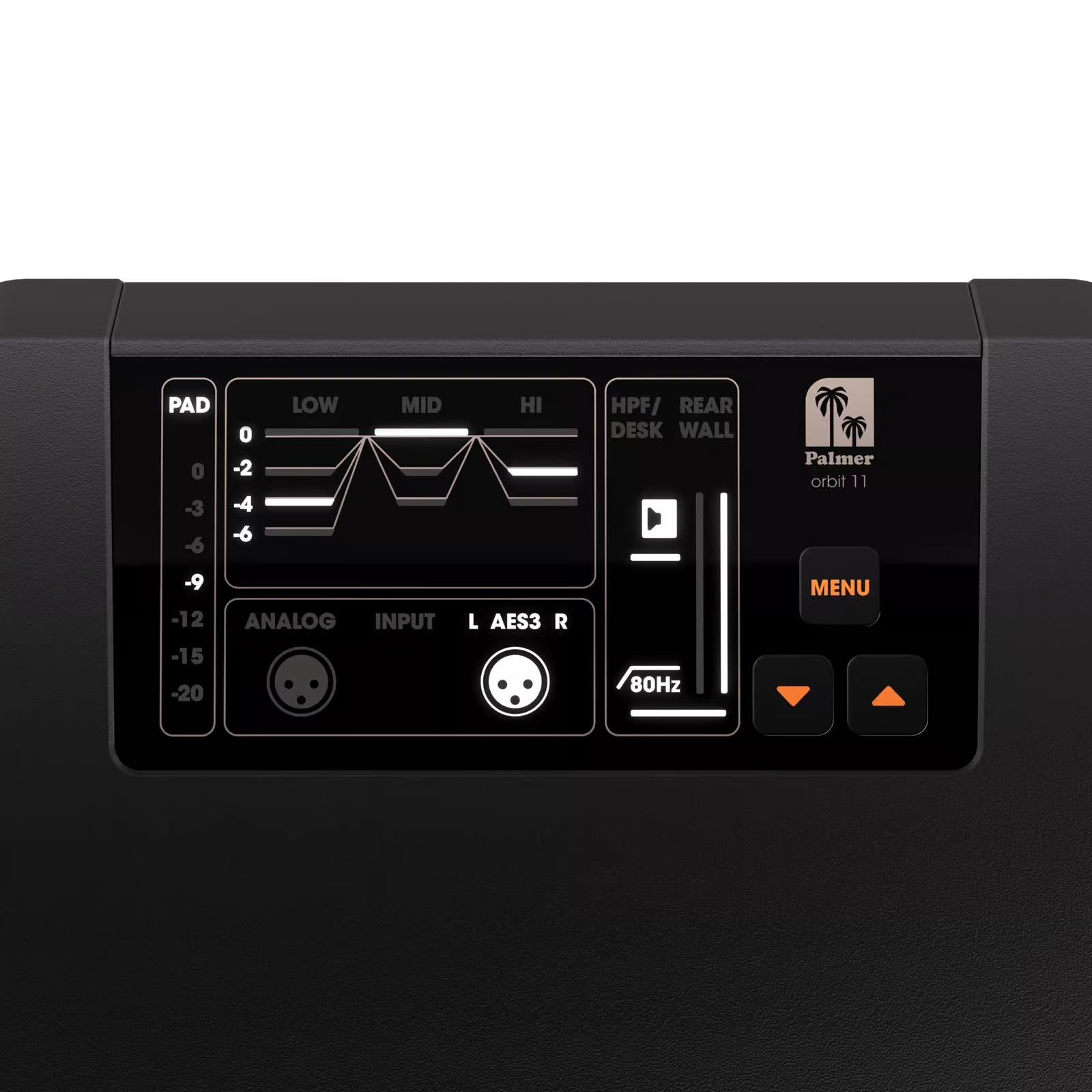The Palmer ORBIT 11 is an active coaxial 3-way studio monitor designed for mixing, mastering, post-production, sound design, broadcasting, and content creation. Its coaxial True Point Source design combines a 6.5″ midrange driver and a 1″ tweeter on a single acoustic axis and provides consistent 120° × 120° dispersion for stable imaging and reliable balance across the listening area.