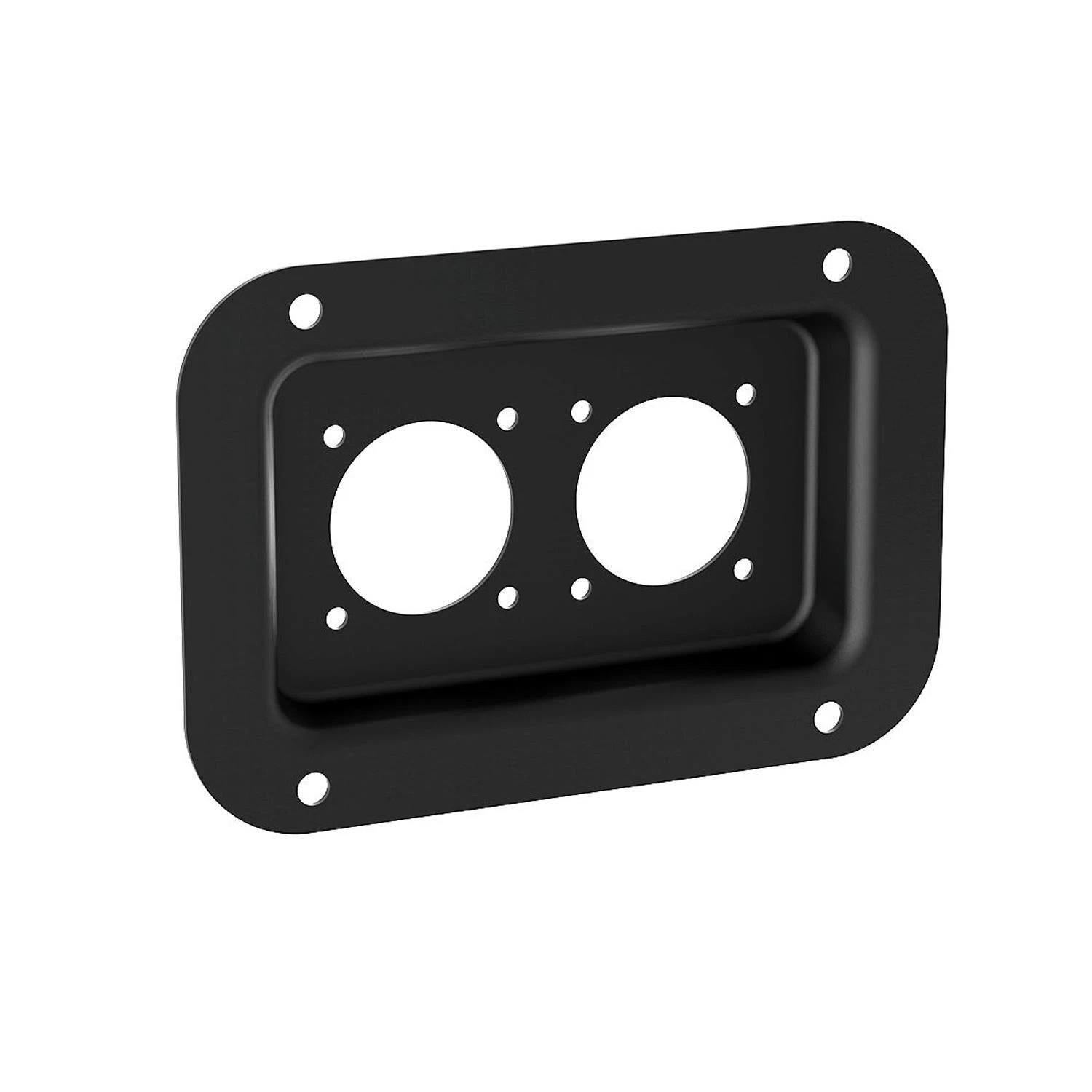 This medium-sized mounting dish from Penn Elcom is specifically punched to accommodate two Neutrik square G-Series Speakon or XLR connectors. Crafted for durability and precision, it provides a clean, secure solution for installing connectors in speaker cabinets, rack panels, and custom audio enclosures. The 13mm depth and sleek black finish make it ideal for professional AV setups, ensuring a flush, robust fit every time.