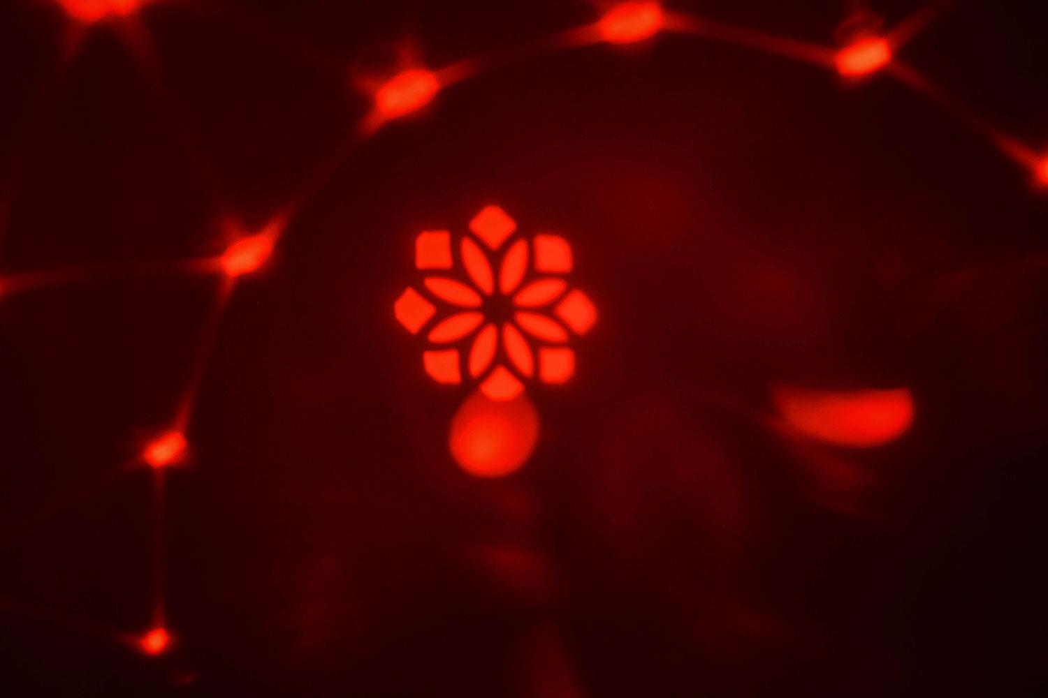 Tabletop LED light effect with 8 x 3W LEDs producing coloured beams and GOBOs which are diverted through a rippled dome to create bright and colourful patterns and effects over a wide area. Easily controlled via the buttons on the unit, included remote control, or 8-channel DMX if required. This simple yet effective unit is ideal for smaller venues or home discos and parties.