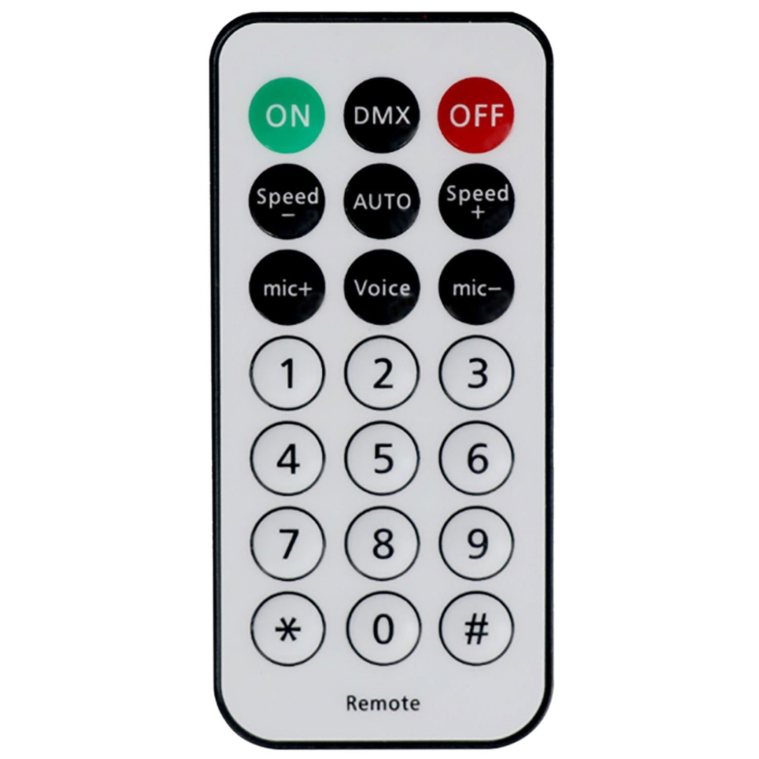 Easy to control using either the buttons on the unit, the included RF remote control, or 8-channel DMX