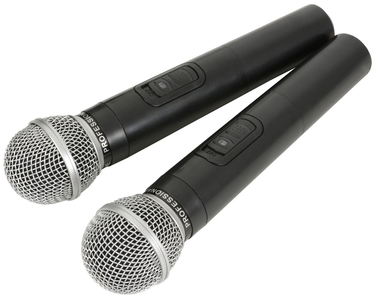 2 x VHF handheld microphones included
