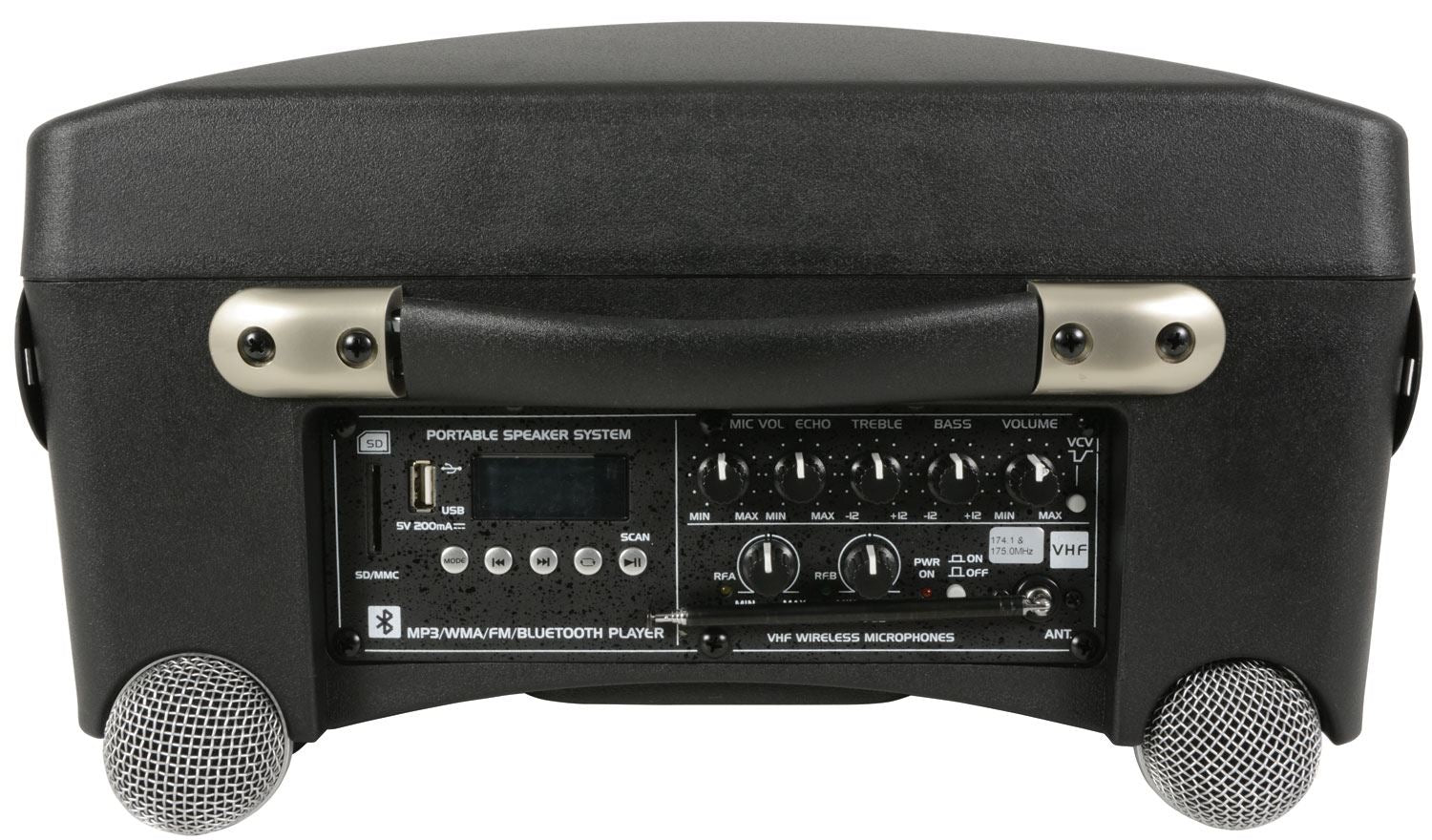Wireless microphone frequencies: 174.1MHz + 175.0MHz