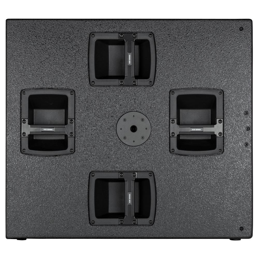 The SUB 9007-AS is one of the most powerful 2x21” subwoofers in the field of live sound. Featuring two, high power, hyper-vented 21” neodymium woofers with 4.0” inside-outside voice coils, this cabinet deliver a serious amount of low frequencies. Powered by a 7200 W digital amplifier, the SUB 9007-AS can perform in the most demanding situations. The housing of the SUB 9007-AS match the RCF D-Line HDL 50 and HDL 20 array systems, enabling stacked systems matched a perfect combination.