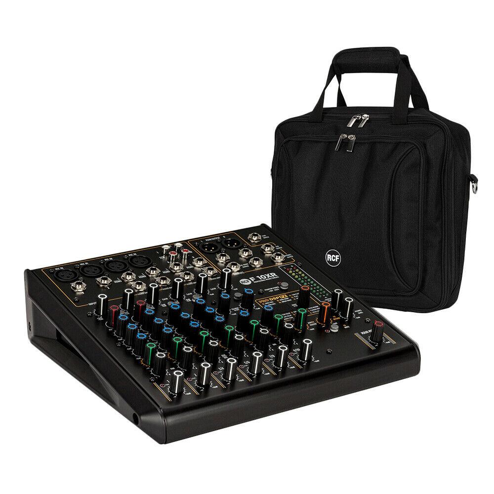 RCF’s next-generation F Series mixers build on the rich analogue legacy found in the professional E Series, featuring high-quality sound in four formats from 6 to 16 channels. A powerful tool for the musician and the sound enthusiast, entirely conceived and designed by the RCF R&D team. Housed in a sturdy metal chassis, each mixer features a full balanced audio path from input to output and the unique PRO DSP FX: 16 professional effects such as Reverbs (Halls, Rooms, Plates, Spring), Delays (Mono, Stereo and Multitap), Chorus, Flangers and Echoes. The models F-10XR, F-12XR, and F-16XR, include a USB audio interface, for stereo recording on computer-based DAW and 2-channel playback.