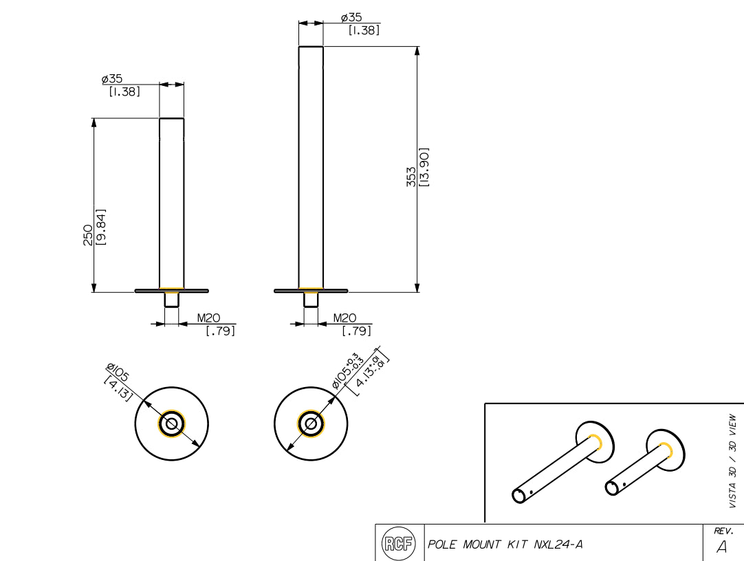 Adjustable pole accessory for stacking NXL 24-A on SUB 8004 (or M20 pole)