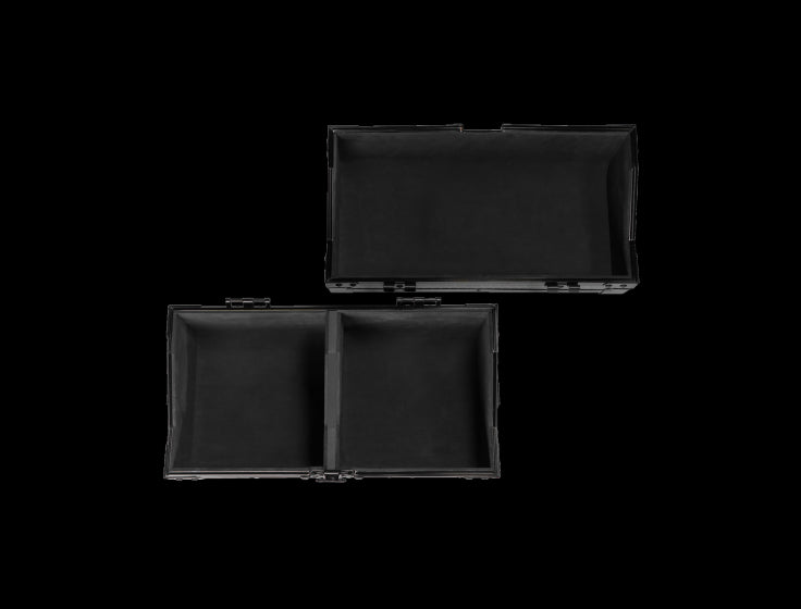 Whether used for digging through crates or preparing a 45s-only set, the removable lid and integrated divider help keep everything organised and ready to go. Thanks to the 50/50 design, the lid can also serve as a practical storage area for 7″ records during performances. Non-slip feet provide a stable stand in any environment, while the clean black hexagonal surface blends seamlessly into any DJ setup. Built for DJs, collectors and the 7″ scene