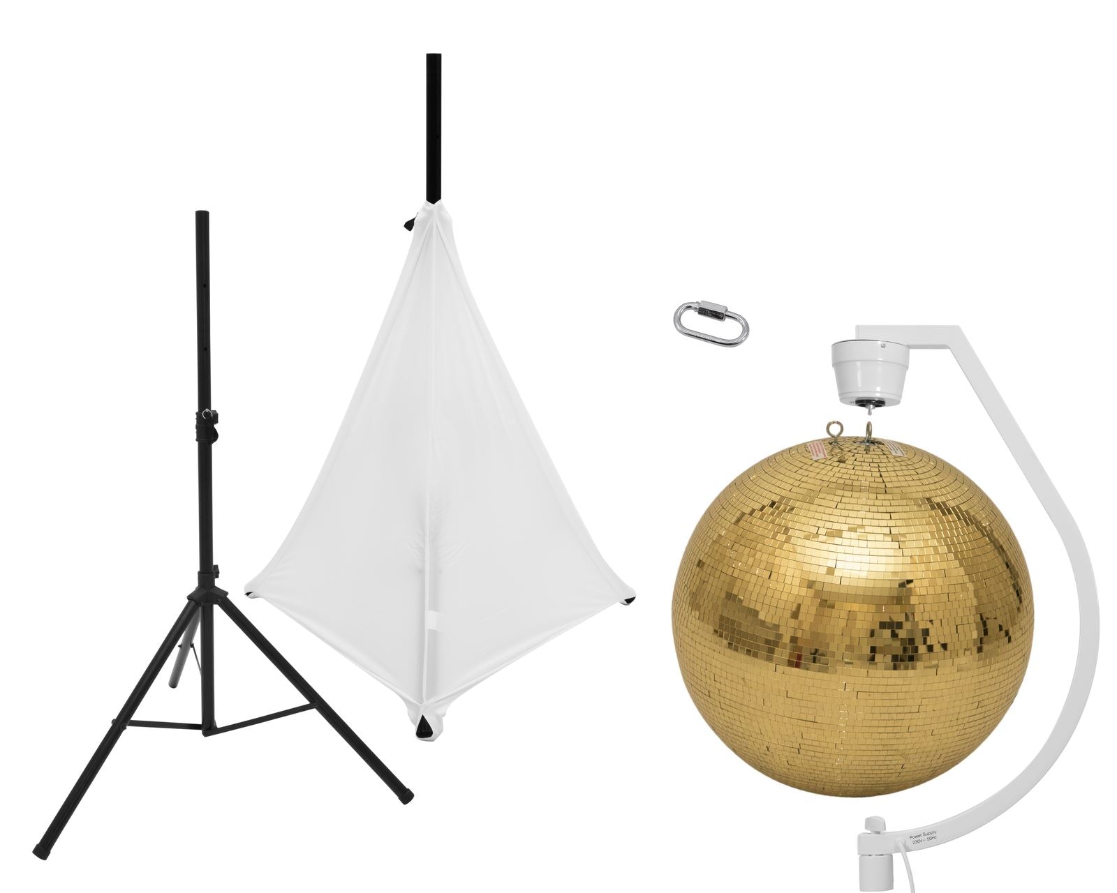 Golden mirror ball incl. stand mount with motor, tripod cover and speaker stand