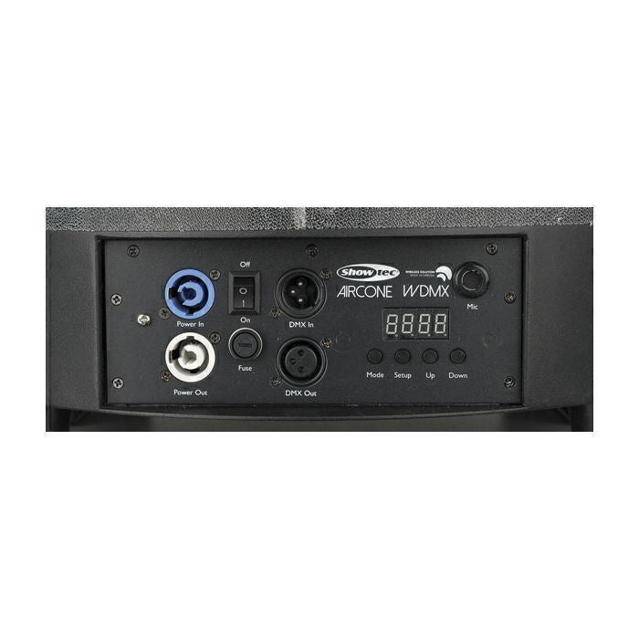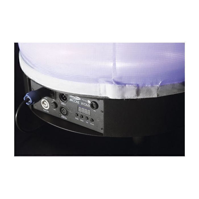 The fan is also controlled via DMX. This allows operating the Aircone Q6 W-DMX at a reduced fan speed to minimize fan noise, or at an increased fan speed to stabilize the cone when placed outside (wind!) or when positioned in different angles.