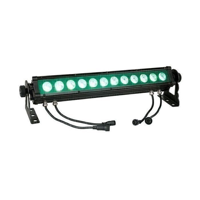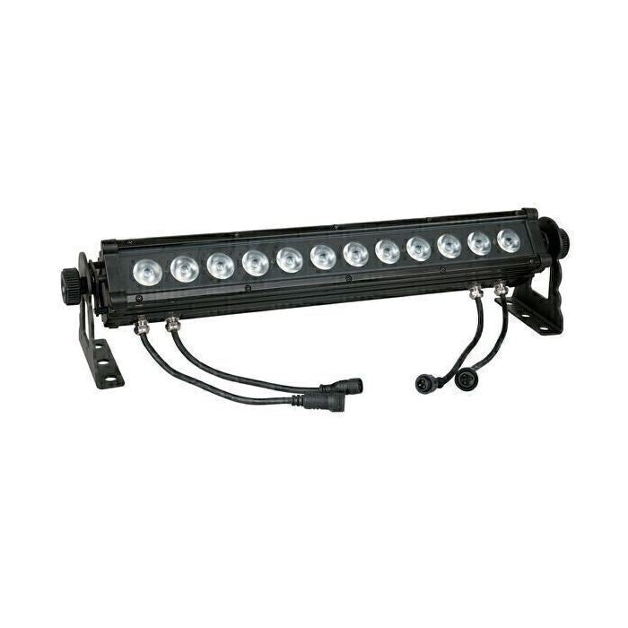 The Showtec Cameleon Bar 12/3 is a compact, yet powerful 12x 3-watt LED Bar with IP65 rating, suitable for indoor and outdoor applications. It has a wide 45 fixed beam angle and features 0 100 % dimmer and 0 20 Hz strobe effects, perfectly suitable for colour mixing on stage. The Cameleon Bar 12/3 can be controlled manually, via DMX and Master/Slave in either Manual and Auto run mode with many available built-in programs. It comes with a dedicated IP65 power connector and bracket.