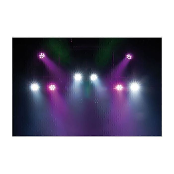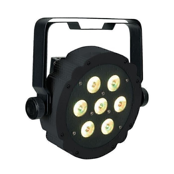 The Showtec Compact Par 7 Q4 is a compact 7x 4 watt RGBW LED Par with double bracket for easy floor positioning, suitable for indoor venues. It has a 15 fixed beam angle and features 0 100 % dimmer and 0 20 Hz strobe effects, perfectly suitable for short-throw colour mixing. The Compact Par 7 Q4 can be controlled manually, via DMX and Master/Slave in either Manual, Auto run and Sound-controlled mode with many available built-in programs. Its design fits in every setting with either black and grey housing.