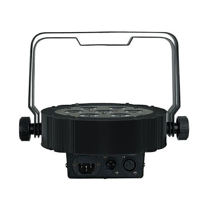 The Showtec Compact Par 7 Tri is a compact 7x 3 watt RGB LED Par with double bracket for easy floor positioning, suitable for indoor venues. It has a 40 fixed beam angle and features a 0100 % dimmer and 020 Hz strobe function, perfectly suitable for short-throw colour mixing. The Compact Par 7 Tri can be controlled manually, via DMX and Master/Slave in either Manual, Auto run, or Sound-controlled mode with many available built-in programs. Its design fits in every setting with either black and grey housing.