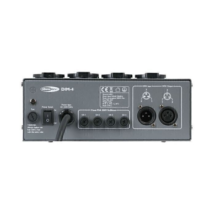 The DIM-4 can be fully controlled by DMX but has as well an built in chaser as well a sound-control function.
