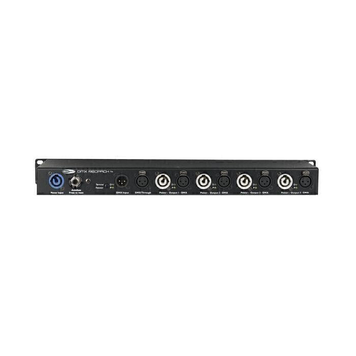The Showtec DMX Recpack 4 is a combination of a DMX recorder, a switch pack and a programmable trigger with timer function. It has 4 individual programmable DMX and switch outputs. Each DMX output can play pre-recorded scenes or shows. Besides the 4 DMX outputs, it also has 4 switchable 230V outputs. Each 230V output has its own individual current monitor which can be limited to a personal max current. Scenes, shows, chases and switches can be triggered by DMX or by weekly and daily timers. The user-definable DMX triggers make it possible to start, stop DMX or switch on and off at specific channel values. The Showtec DMX Recpack is a solution for automation of intelligent lights in combination with all kinds of electric devices. The ideal unit for shops, theme parks, museums and all other situations with the need for pre-programmed and triggered shows.